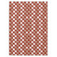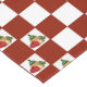Ripe red tomatoes, leafy green basil, a large bulb of garlic and a traditional bottle of Chianti are all included in the Italian-inspired still life on this red and white checkerboard pattern tablecloth.