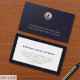 Leave a lasting impression with our elegant gold logo estate planning business card. The blue leather print background and brushed gold logo emblem offer an elegant touch, perfect for estate planners, attorneys, advisors, and any business professional looking to leave a lasting impression. The back features contact information with golden accents for a cohesive design. Network with confidence and showcase your professional details.