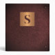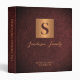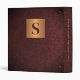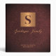 Luxury modern elegant monogram initial and family name signature script style personalized estate planning trust documents portfolio binder featuring a faux metallic gold copper square with initial letter and your custom text over a burgundy leather like (PRINTED TEXTURE) background.