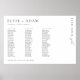 This seating chart poster features a modern minimalist design and 3 tables layout. The script text heading is an image that cannot be edited. The heading image can be resized to fit any poster size. All of the other text is fully editable. For more advanced customization of this design, simply select the "Customize It" button above.