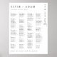 This seating chart poster features a modern minimalist design and alphabetical layout. The script text heading is an image that cannot be edited. The heading image can be resized to fit any poster size. All of the other text is fully editable. For more advanced customization of this design, simply select the "Customize It" button above.