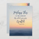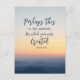 Postcard with inspirational quote scripture depicts a nature photograph with a beautiful blue and orange sunset over the mountains. It features Bible Verse Esther 4:14, "Perhaps this is the moment for which you have been created." The greeting, prayer can be personalized or deleted for a hand written message.