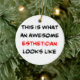 Lightweight, smooth, pure white ornament with nice sheen. Perfect size to be seen from across the room ... and to attract closer inspection! Price was great for ordering enough for the whole family! Clear, bold black design just as requested. Matches the order exactly. Just so nice!