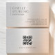 A soft metallic gradient — transitioning from cool silver to warm champagne — gives the card a refined, spa-inspired glow.