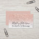 An elegant modern, stylish Esthetics & Massage business card with elegant modern simple hand lettering style typography in white on a faux rose gold glitter and white marble trendy and elegant background. all text is customizable, add your social media.