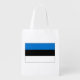 I own a lot of reusable grocery bags, but this one holds its box shape and simply stands up on its own even if there is nothing in it. Its stiffer than your regular reusable bag too, and the material is water resistant. I poured water on the exterior and it didn't penetrate inside to the other side. I'm buying a couple more. Wish I knew how durable these bags were or I would have purchased a few more with my initial order. I also like how it folds and buttons up when not in use, making it easy to put into a handbag or luggage. I haven't used this bag yet, as I purchased it for travel use, like when you're at the airport and need to small sturdy bag to place any airport purchases in, like food, souvenirs etc. I can tell you when you first see this bag, it looks very cheap, but after closer inspection of the material and the seams its a very sturdy reusable bag. I tested it out by putting some really heavy objects inside and I could not observe any stress to the bag at all. Another thing I like about it, is the fact the medium size that this is makes it easy to just carry it in your hand without the bottom of the bag scraping the ground, like most other bags do when you're short. That alone, deserves 5 stars. I just wish there were more colors to choose from! The PDX Airport Carpet printing looks just like the photo, and using this bag during travel might be a conversation piece when/if a native from Oregon happens to see it.