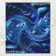Estampa com imagem azul que se assemelha a algo parecido com uma estrela, mas foi submetida a efeitos de "onda" que fizeram as linhas do desenhos tomarem uma forma de ziguezague.