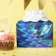 Estampa com imagem azul que se assemelha a algo parecido com uma estrela, mas foi submetida a efeitos de "onda" que fizeram as linhas do desenhos tomarem uma forma de ziguezague.