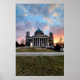 A view of the grand historic Basilica in Esztergom Hungary backlit by the sunset sky.