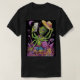 Comical alien tourist struggling with Earth technology while attempting a selfie at famous landmarks.