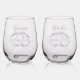 Etched Bride and Groom Wedding Stemless Wine Glass