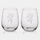 Etched Floral Stemless Wine Glass
