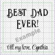 Best Dad Ever! and Name will be etched on front. Loving rustic mason jar with handle holds 16 oz of beverages. Use the simple Template provided to change text and name. The standard-size top will fit all regular-sized mason jar lids (not included). Each jar is laser engraved and dishwasher safe. Choose from 11 other glass styles that this design will fit. See "About This Product" at side for more information. Made in the USA.