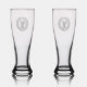 This etched pilsner beer glass is shown with a golfer in the winner's wreath print.
