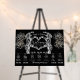 The black and white palette is a perfect embodiment of the gothic aesthetic, infusing the sign with a sense of timeless elegance. This sign is an ideal fit for couples who seek to celebrate their union with a touch of unconventional beauty, while also keeping their loved ones informed about the day's schedule.