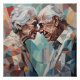 This geometric piece depicts an elderly couple in a tender moment, with colorful triangles in soft and vibrant tones. The interwoven shapes symbolize a lasting union, while the blended colors reflect the depth of their emotions and the beauty of a shared life.