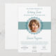 Honor your loved one with this elegant and customizable funeral program template. Featuring a timeless teal and white color palette, a circular portrait frame, and sophisticated typography, this easy-to-edit layout allows you to personalize service details, dates, and heartfelt tributes. Create a professional, high-quality keepsake that beautifully celebrates a life well-lived and provides a meaningful guide for family and friends during the memorial service.