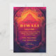 The background within the arch is a mesmerizing gradient that transitions from deep, mystical purples at the bottom to warm, radiant reds and oranges at the top. This color palette symbolizes the transition from darkness to light, echoing the very essence of Diwali. The gradient naturally draws the eye upward, creating a sense of movement and energy that reflects the festive atmosphere of the celebration.