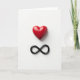 This unique card features a shiny red heart floating above a black infinity symbol on a plain white background. The heart looks smooth and glossy, with bright highlights that make it feel like it’s catching the light. Below it, the infinity symbol has neat, curved lines and sits centered under the heart, suggesting love that keeps going. The simple layout leaves lots of open space around the two shapes, so your eyes go straight to the message. The strong contrast of red, black, and white keeps the design focused and easy to read at a glance. There isn’t any printed text on the front, so the heart and infinity sign do all the talking. It feels romantic and steady, like a small reminder of lasting care ❤️