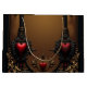 Eternal love in the shadow of Gothic darkness. The ornate frame, inspired by Gothic architecture, consists of two majestic black columns adorned with delicate gold accents. These columns frame a large, arched opening that shines against a warm brown background, providing the perfect contrast to the dark elements. Delicate red hearts are partially wrapped in fine cobwebs.