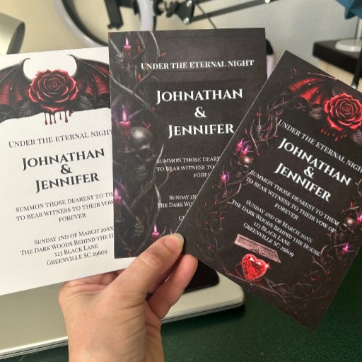 Perfect for vampire, gothic, dark romance, alternative, or Halloween weddings, this invitation blends moody sophistication with high-end editorial style. Fully customizable text and colors allow couples to create a truly unforgettable first impression.