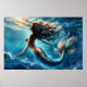 Ethereal aquatic mermaid beauty in deep blue poster