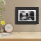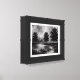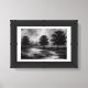 This atmospheric black and white landscape evokes a sense of mystery and tranquility. The scene features a serene body of water reflecting the dramatic sky above. Three prominent trees stand tall on the shore, their branches reaching towards the heavens. The distant horizon is dotted with the faint silhouette of a cityscape, adding a touch of intrigue to the natural setting. The play of light and shadow creates a captivating depth and dimension, while the absence of color emphasizes the raw beauty of the landscape.