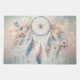 This enchanting artwork captures the delicate beauty of a dreamcatcher adorned with soft pastel feathers, intricate florals, and sparkling celestial details. The gentle gradient of pinks, blues, and creams creates a serene, ethereal atmosphere, blending bohemian charm with a mystical, dreamlike quality. Floating butterflies and shimmering beads add a touch of magic, evoking a sense of protection, tranquility, and spiritual awakening. The composition embodies a celestial aesthetic, perfect for those drawn to boho elegance, soft cosmic energy, and the calming presence of nature-inspired designs. A mesmerizing blend of fantasy and spirituality, this piece invites a sense of peace and wonder. AI generated artwork.