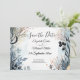 The design features a soft, ethereal arrangement of powder-blue and muted earthy tones with delicate foliage, berries, and florals encircling the edges. The frame is predominantly decorated with watercolor-style leaves, cotton flowers, and dark berries, giving it a rustic yet elegant feel. The central area is left blank, ideal for text or event details, surrounded by organic shapes that evoke a serene, autumnal mood. This sophisticated, nature-inspired motif would work beautifully for a wedding collection with a romantic, timeless atmosphere.
