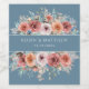Delight your guests with these gorgeous favor labels, wine is simply an example, choose from many sizes and styles! Label displaying your name(s) and date, event or thank you message, surrounded by exquisite hand painted watercolor floral bouquet with flowers and foliage in blush, dusty rose, ivory, peach, cloudy slate blue, gray and sage tones, over a romantic slate/cloudy dusty blue background. Part of our "Ethereal in Dusty Blue" wedding and events collection.