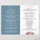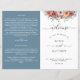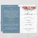 Welcome your guests with this elegant wedding program featuring your details with top floral border with delicate hand painted watercolor flowers and foliage in a combination of blush, dusty rose, ivory, peach, cloudy slate blue, gray and sage tones. Two contrasting sides in white and an elegant s;late/cloudy dusty blue background color. Use of modern calligraphy details. Personalize the program in both sides. NOTE: this program will arrive flat and requires folding down in the middle to assemble. The default value program is recommended.