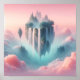 Ethereal Floating Islands and Waterfalls in Pastel Poster