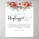 Welcome your guests to your ceremony with this unique and elegant Unplugged Ceremony sign. 8" x 10" is simply an example, you may choose from a variety of smaller and bigger sizes. Delicate hand painted watercolor floral design on top with flowers and foliage in blush, dusty rose, ivory, peach, cloudy slate blue, gray and sage tones. Modern hand written calligraphy details. Part of our "Ethereal Floral" wedding and events collection.