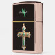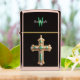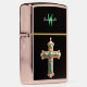 Ethereal Green Cross Pendant Floating on White Zippo Lighter