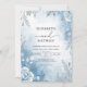 A dreamlike cascade of soft blue watercolor washes creates an enchanting backdrop. Delicate silver-toned floral and leafy branches frame the scene with a touch of frosty elegance. This design evokes a serene and romantic atmosphere.