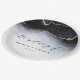 Ethereal Mist Ombre Navy Blue Watercolor Moody Wedding Design with hand painted watercolor misty wash fading background texture, rose gold foil look veining lines, and trails of confetti dots and edges. A trendy and Modern Look for any season, with soft dreamy color palette : Black, dusty blue, gray, White, and rose gold, with a chic popular brush Script lettering Font - Personalized Wedding Reception Table Decor Monogram Paper Plates!