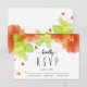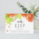 Ethereal orange flowers floral fall wedding RSVP card. The upper part is covered with a bouquet of beautiful orange flowers with green leaves.