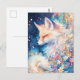 This captivating postcard features a serene red fox with its eyes closed in a moment of pure, dreamlike tranquility. The artwork is rendered in a vibrant watercolor style, utilizing a deep midnight blue backdrop that makes the fox's warm orange and cream fur truly pop. A lush arrangement of pink, purple, and yellow wildflowers sweeps across the scene, accompanied by shimmering golden light particles and drifting petals. With its mystical vibe and rich, painterly textures, this piece captures a sense of celestial magic. This postcard is a perfect choice for sending a heartfelt message, a unique birthday greeting, or a "thinking of you" note to any nature or fox lover.