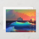 Ethereal Teal Waves, Ship and Pink Sunset Postcard