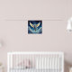 This fantasy poster features an ethereal digital painting of a white cat with large, glowing angel wings soaring through a dreamlike night sky. The cat is positioned in the center, floating above soft, swirling clouds. The background features a deep blue atmosphere filled with twinkling stars and crescent moons, creating a serene and magical aesthetic.