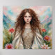 Ethereal fantasy portrait of a curly-haired woman in an ornate gown, surrounded by wildflowers and misty mountain landscapes - romantic, painterly art.