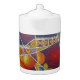 It was great to be able to be creative with my own pictures, and add fonts and other options Zazzle makes available to make my gift personal. The teapot became a special anniversary keepsake my brother and his wife raved about. Just the way I ordered it. I probably should have made the lettering a little darker, or white to stand out against the sky in the photos, but it turned out well.