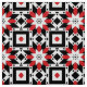 Add a touch of global inspiration to your next DIY project with this striking geometric pattern. The design features a bold, high-contrast motif inspired by traditional ethnic folk art and tribal textiles. Intricate eight-pointed stars and floral shapes are set within a structured tile grid, utilizing a classic color palette of deep red, charcoal black, and crisp white. This repeating mosaic print is perfect for creating modern boho home decor, unique upholstery, quilting squares, or fashion accessories. Whether you are aiming for a rustic farmhouse look or a modern eclectic vibe, this versatile print adds instant visual interest and sophisticated charm.