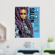 Decorate your hair salon with this stylish poster in purple and blue, with your business name in flashy metallic foil. Created for ethnic hairstyle specialists, the artsy portrait features a fierce & beautiful black woman with long, thick braids.