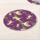 Ethnic Pattern Purple Green Gecko Lizard Print Round Paper Coaster