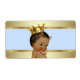 Baby blue and gold ethnic prince baby shower water bottle labels with adorable little prince wearing a gold crown on a beautiful blue and gold background. You can add text to personalize these adorable baby boy prince water bottle labels, and you can change the background color to whatever you prefer. Not for use in ice buckets - these are not water proof.