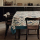 I am very pleased with this purchase. The quality is good, it is heavy and the image decorating it is brilliant and very eye-catching. When I first laid eyes on this tablecloth, still folded and in the transparent covering, it brought a smile to my face and I knew right away it was a good choice. A few days later my wife replaced our old tablecloth with this little gem and was quite satisfied. She noted that it is thick and fits the table very well with just enough hang over (although our dining table is extended by a traditional leaf which we keep in place even if we are not having guests over) and stays put instead of blowing all over the place. The image decorating this tablecloth is brilliant and very eye-catching. It looks even better than it appeared online.