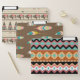Handsome earth tone set of 3 file folders done in ethnic tribal patterns. One folder has a pattern of buffalo, teepees and arrows, the second folder is done in brown with a colorful feather pattern and the last has a colorful southwest tribal design. Customize to add any text you want. Great for home, office or school.