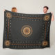 The intricate, repeating solar rosette and dot patterns draw directly from the incised and rouletted (roller-stamped) decoration of the 7th-5th Century B.C.E. vessels, which were often funerary and intended for elite consumption. The warm terracotta and ochre accents stand out in crisp relief against the deep, burnished charcoal field, mimicking the highly polished surface that once looked like costly imported silver and gold metalware. This isn't merely a blanket; it is a hierophany—a manifestation of the sacred past in your modern living space, a 'spiritual exercise' for your home. It creates an ordered, cosmically-oriented space, transforming your sofa from a mere object into a center point of mythic comfort.