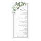 This BUDGET wedding menu card showcase a delicate eucalyptus branch adorned with white blossoms and sage green green leaves. Encircling the design is a sleek black border, adding a touch of elegance to the overall look. The word 'MENU' and the names of the couple are artistically presented in decorative typography, enhancing the visual appeal of the card. On the reverse side, a solid black color provides a striking contrast, making the card both stylish and budget-friendly. The cover has been designed using some assets from Freepik.com
